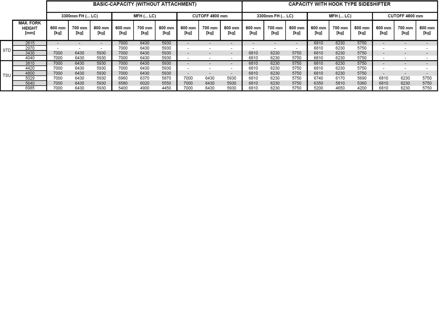 | Capacité de levage | 7 000 kg |