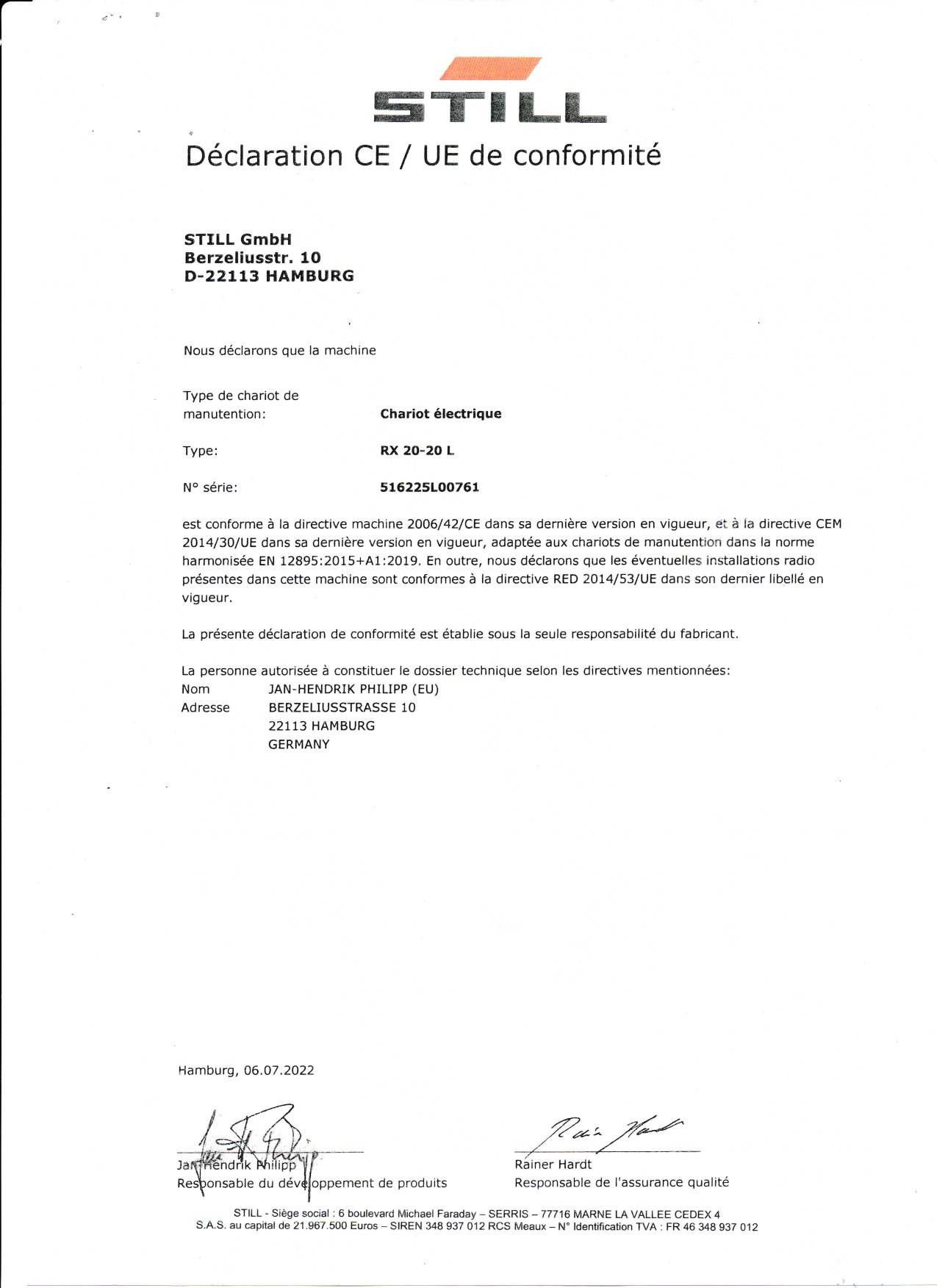 | Numéro de série | 516225L00761 |